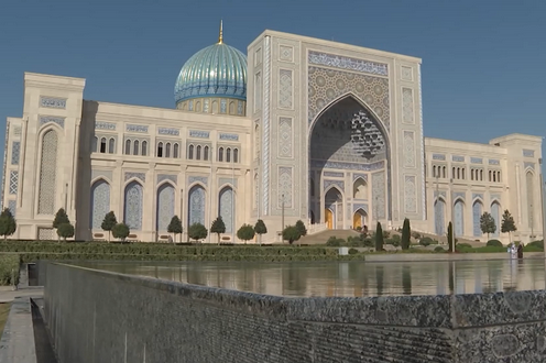 The Center for Islamic Civilization was built next to the Khast-Imam complex. Designed in the style of medieval monuments, it features four 34-meter-high portals and a central dome rising 65 meters. The building houses a Quran hall, a 460-seat conference hall, and a museum with exhibitions spanning the history of Uzbekistan from pre-Islamic times to the present. The Center aims to serve as a hub for studying and reinterpreting the heritage of the past in collaboration with the International Islamic Academy of Uzbekistan and scholarly institutions worldwide.