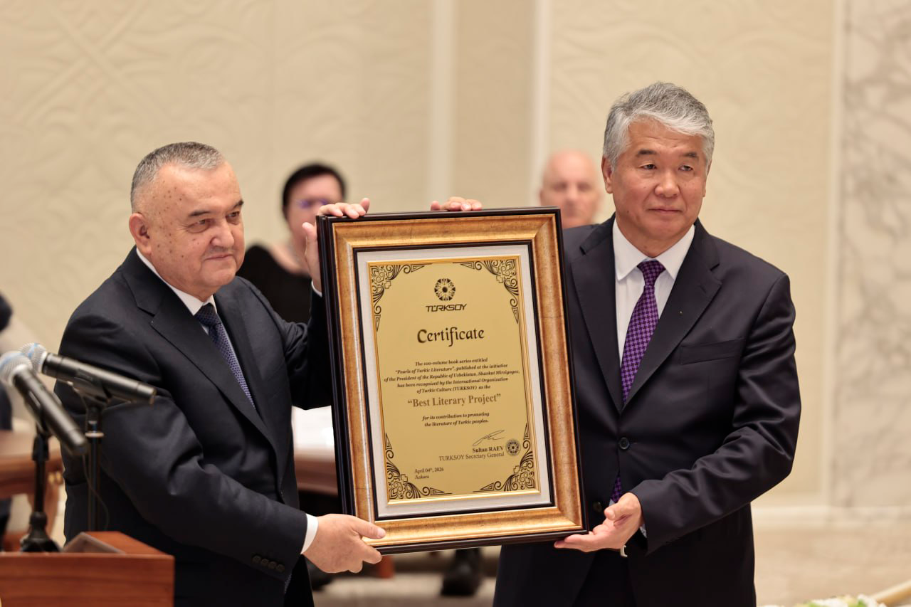 The certificate was presented to the Center’s leadership by TURKSOY Secretary-General Sultan Raev. “Today, on behalf of TURKSOY, three certificates were awarded. The first went to the 100-volume collection Pearls of Turkic Literature, launched at the initiative of President Shavkat Mirziyoyev. This unprecedented project has been recognized as a unique literary phenomenon and received the certificate for ‘Best Literary Project.’ The second award, ‘Best Museum of the Turkic World,’ was given to Uzbekistan’s Center for Islamic Civilization, which has also joined TURKSOY’s Association of Turkic World Museums,” Raev said.